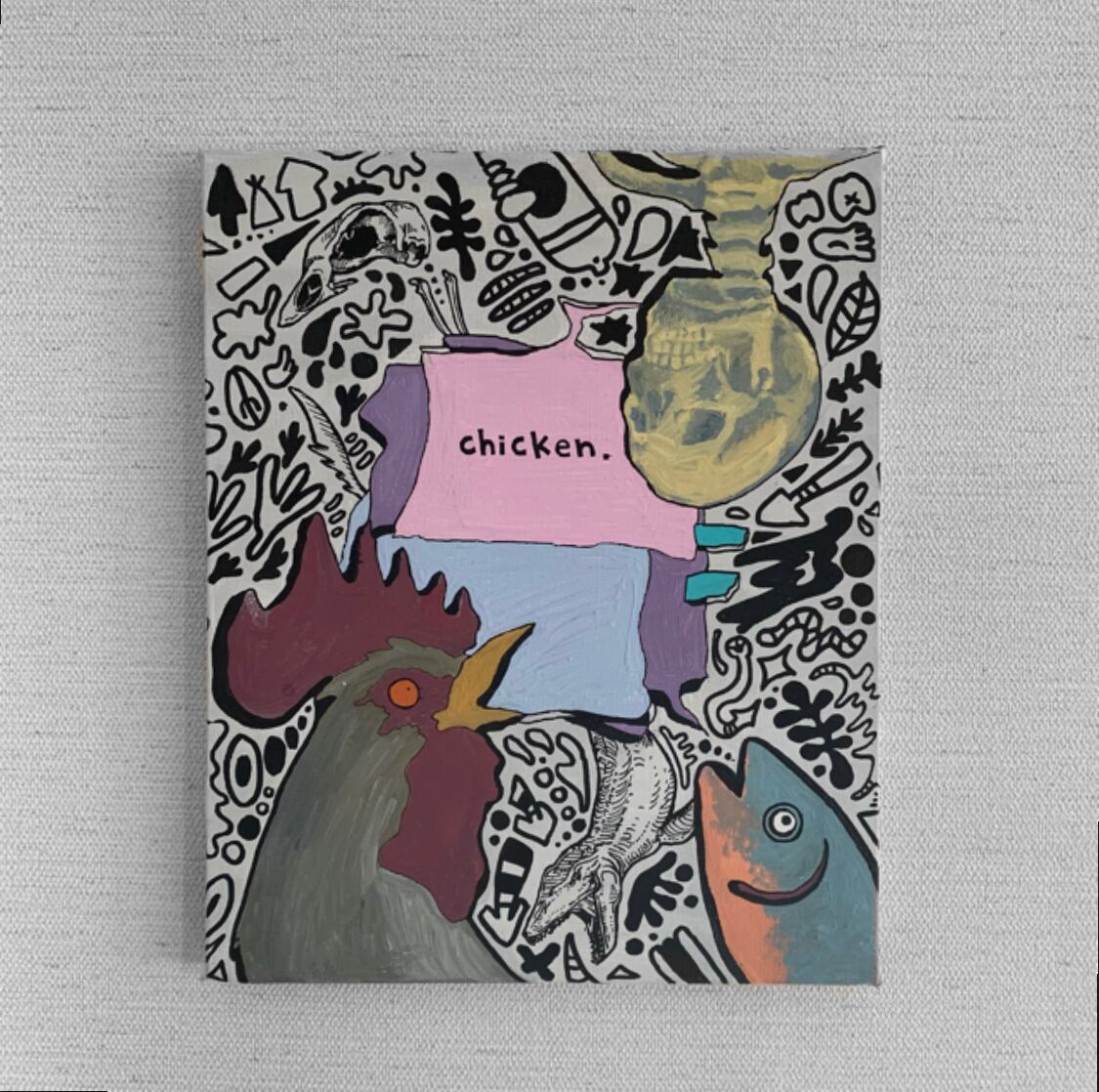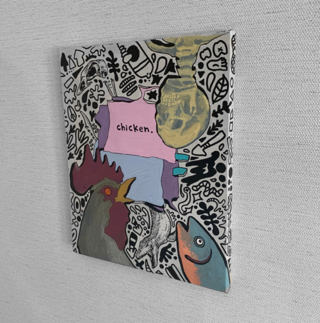 アクリル画 原画 絵画 アート 約27×22cm 厚さ約1cm アクリル絵具 POSCA chicken 鶏 ニワトリ